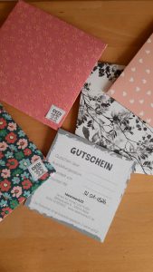 Aus zahlreichen von unserer Papierfee Susanne eigens dafür gestalteten Hüllen könnt ihr euch die schönste aussuchen.